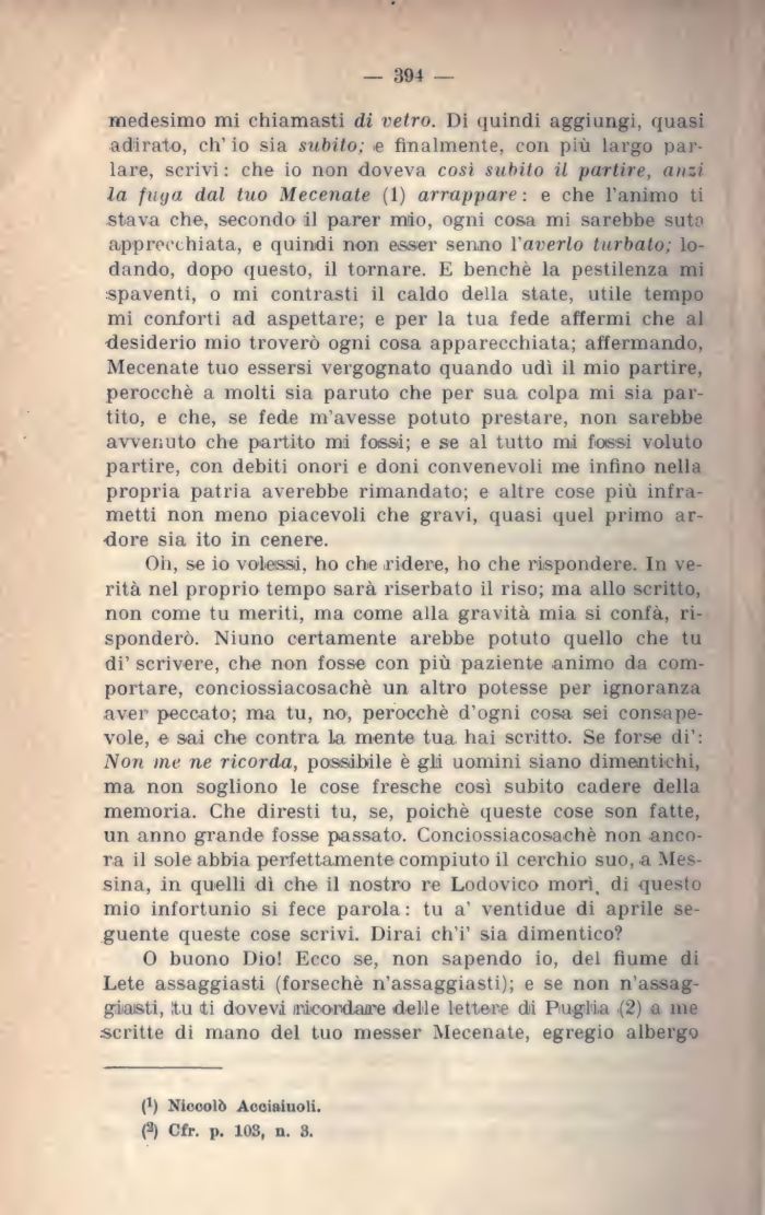 O buono Dio! Ecco se, non sapendo io, del fiume di Lete assaggiasti (forsechè n'assaggiasti); e se non n'assaggiasti, Itu ti dovevi inicordaire delle lettere di Puglia (2) a me scritte di mano del tuo messer Mecenate, egregio albergo