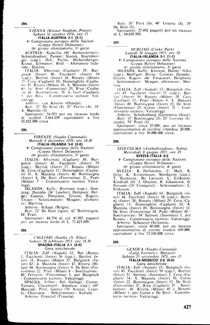 Reti: 15' Boninsegna (I), 23' Conway (Ir-landa), 59' Prati (I).