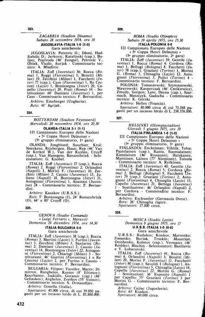 Mercoledì 20 novembre 1974, ore 20,30 OLANDA-ITALIA 3-1 (1-1)