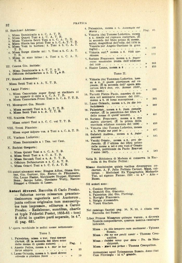 Autori diversi. Raccolta di Carlo Proske. — Selectus novus missarum praestan-tiBsimorum superioris aevi Auctorum, juxta codic.es originales tum manuscrip-tos tum impreiBOB, editarum a Carolo ProBke. - Ratìsbonae, sumtibus, ohartie et typis Friderici Pustet, 1855-61 - tomi 2 divisi in quattro parti separate, in 4 °, di pag. 681.