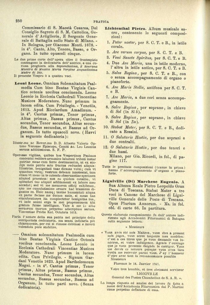 Lichtentlial Pietro. Album musicale sacro , contenente lo seguenti composizioni :