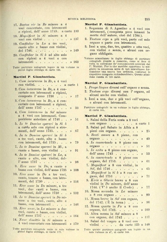 10. Ecce nunc in Do n tre voci, canto, tenore e basso, con istromenti, del 1730 ......» 116