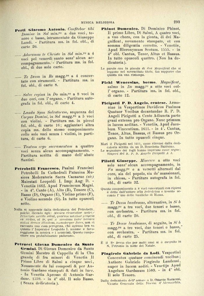 Phinot Domenico. Di Doininico Phinot, 11 primo Libro, Di Salmi, A quatro voci, a vno choro, con la gionta, di (Ivi Magnificat, novamente stampato, et con somma diligenza corretto. - Venetiis, Apud Hieronymuin Scotum. 1555. - in 4° obi. Cantus, Tenor, Altus et Bassus. In tutto opuscoli quattro. (Non ha dedicatoria).
