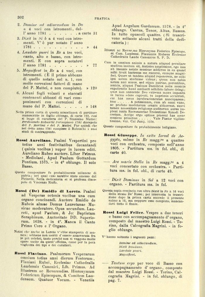 Rossi I.iiigi Felice. Vespro a due tenori e basso con accompagnamento d' organo, composto dal maestro Luigi Rossi. - Torino, dalla Calcografia Magrini. - in foglio oblungo.