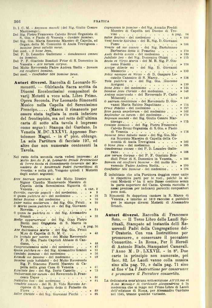 le rispettive parti per le voci, poiché in alcuni Mottetti v' ha il solo Basso continuo senza la parte superiore del Canto. Questa raccolta è assai preziosa per indicarci parecchi compositori poco noti.