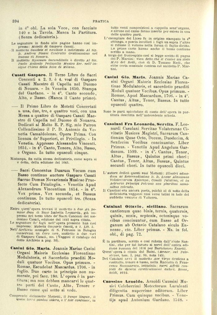 Casolanl Fra Leonardo, Servita. F. Leonardi Casulani Servit.ae Yoìateranae Ci-vitatis Musices Magistri, Sacrarum Can-tionum Quae Octo, Decem, Duodecim, & Sexdecim Vocibus concinuntur. Liber Primus. - Venetiis Apud Angelum Gardanum. 1599. - in 4°. Cantus, Tenor, Altus , Bassus , Quintus primi ebori ; Cantus, Tenor, Altus, Bassus, Quintus secundi ebori. In tutto opuscoli dicci.