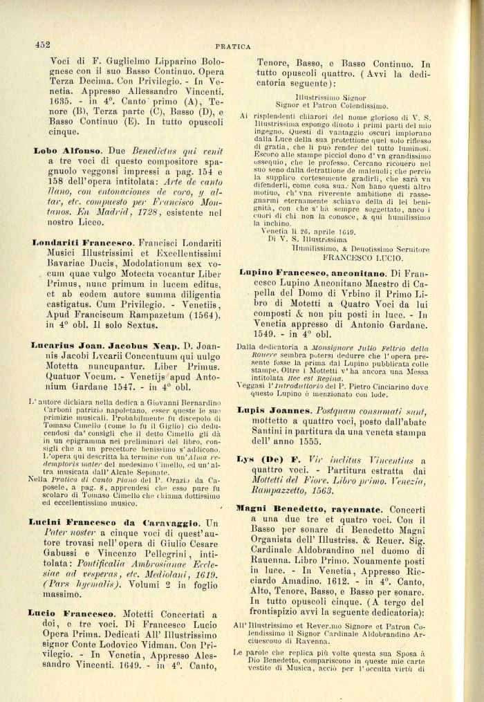 Lobo Alfonso. Due Benedictua qui venti a tre voci di questo compositore spa-gnuolo veggonsi impressi a pag. 154 e 158 dell'opera intitolata: Arte de canto Vano, con entonaciones de coro, y aitar, etc. compuesto pei• Francisco Mon-tanos. En Madrid, 1728, esistente nel nostro Liceo.