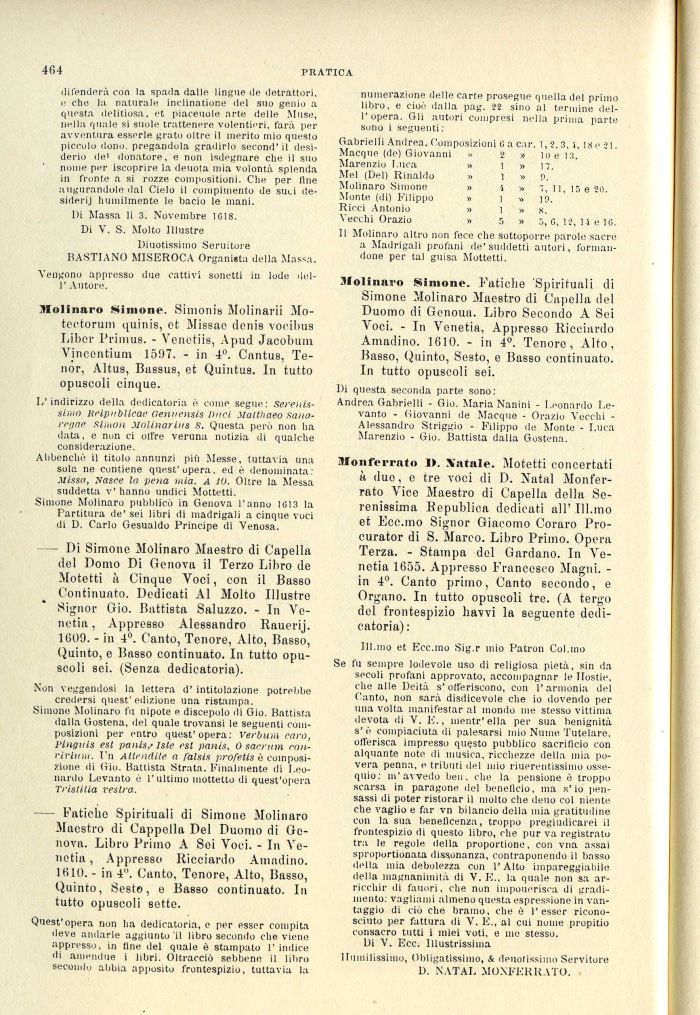 L' indirizzo della dedicatoria è come segue: Serenissimo Reipublicae Genuensis Duci Matthaeo Sana-retjae Simon Molinarius S. Questa però non ha data, e non ci olire veruna notizia di qualche considerazione.