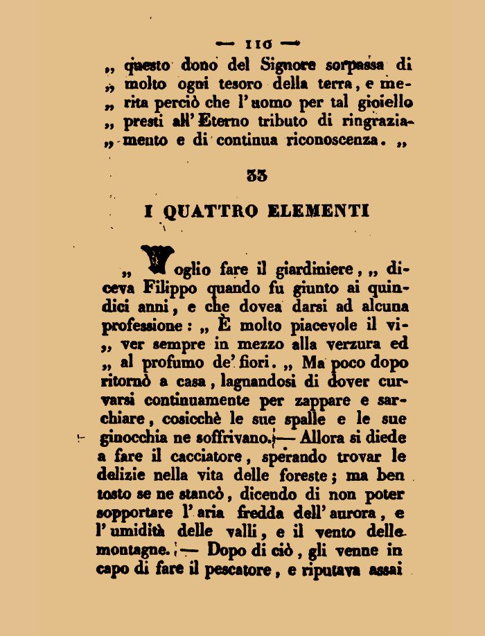 — 110 —* „ questo dono del Signore sorpassa di ,, molto ogni tesoro della terra, e me-„ rka perciò che l'uomo per tal gioiello „ presti all'Eterno tributo di ringrazia-* „ mento e di continua riconoscenza. „