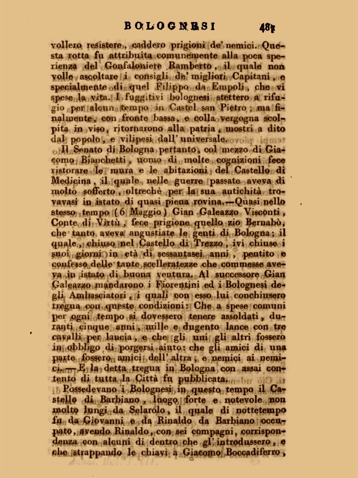 Gonfaloniere Ramberto Capitani Filippo Empoli Castel Pietro Sanato Bologna Giacomo Bianchetti Castello Medicina Gian Galeazzo Visconti Conte Virtù Bernabò Bologna Castello Trezzo Gian Fiorentini Bolognesi Ambasciatori Qgni Bologna Città Bolognesi Castello Barbiano Selarolo Qiovanni Rinaldo Barbiano Rinaldo Giacomo Boccadiferro Qle