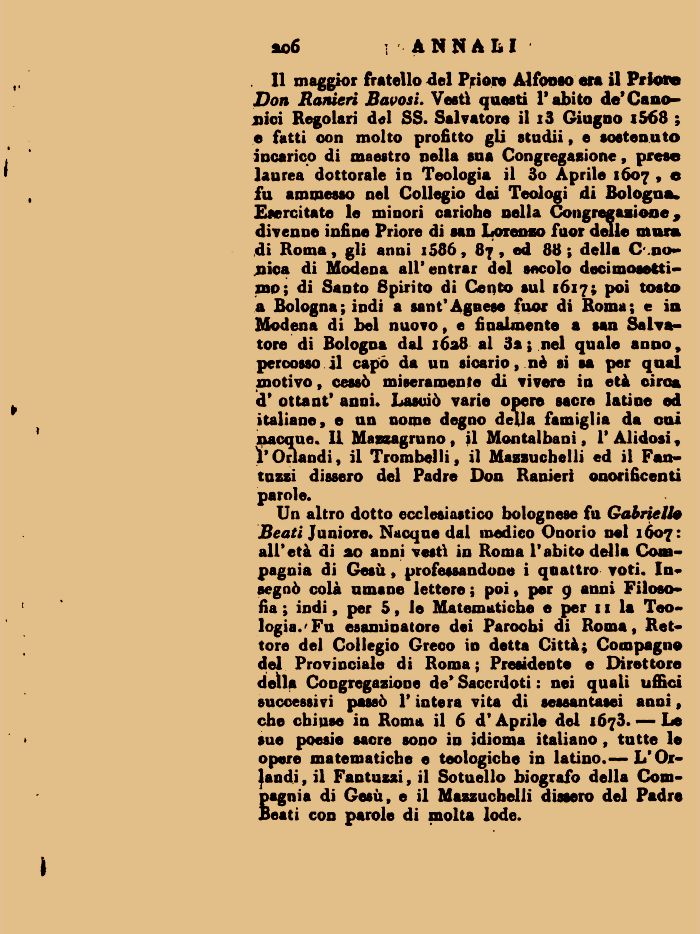 Priore Alfonso Priore Don Ranieri Bavosi Canonici Regolari Giugno Congregazione Teologia Collegio Teologi Bologna Congregazione Priore Lorenzo Roma Cronica Modena Santo Spirito Cento Bologna Agnese Roma Modena Salvatore Bologna Mazzagruno Montalbani Alidosi Orlandi Trombelli Mazsuchelli Fantuzzi Padre Don Ranieri Gabriella Beati Juniore Onorio Roma Compagnia Gesù Filosofia Matematiche Teologia Parocbi Roma Rettore Collegio Greco Città Compagno Provinciale Roma Presidente Direttore Congregazione Sacerdoti Roma Orlandi Fantuzzi Sotuello Compagnia Gesù Mazzuchelli Padre Beati Salvatore Nacque