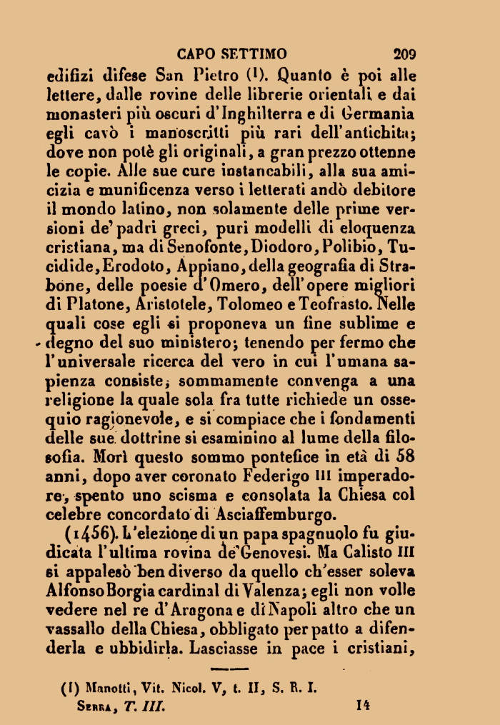 San Pietro Inghilterra Germania Senofonte Diodoro Polibio Tucidide Erodoto Appiano Stra-bone Omero Platone Aristotele Tolomeo Teofrasto Federigo III Chiesa AscialFemburgo Genovesi Calisto III Alfonso Borgia Valenza Aragona Napoli Chiesa Marietti Vit Mori
