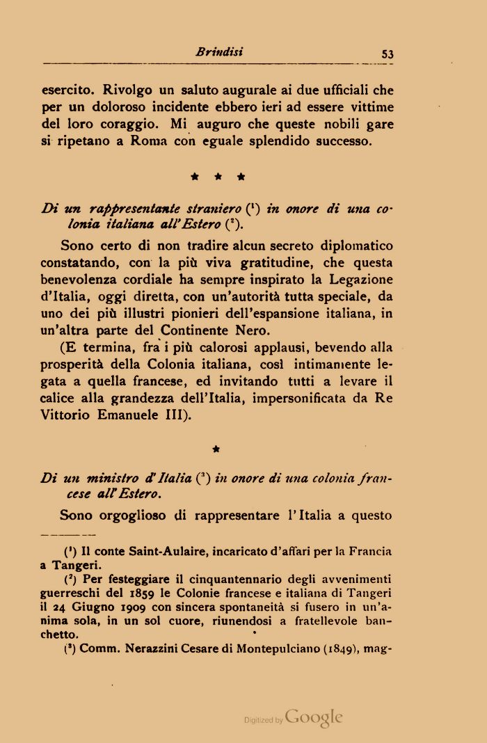 Di un ministro d'Italia (3) in onore di ima colonia francese ali Estero.