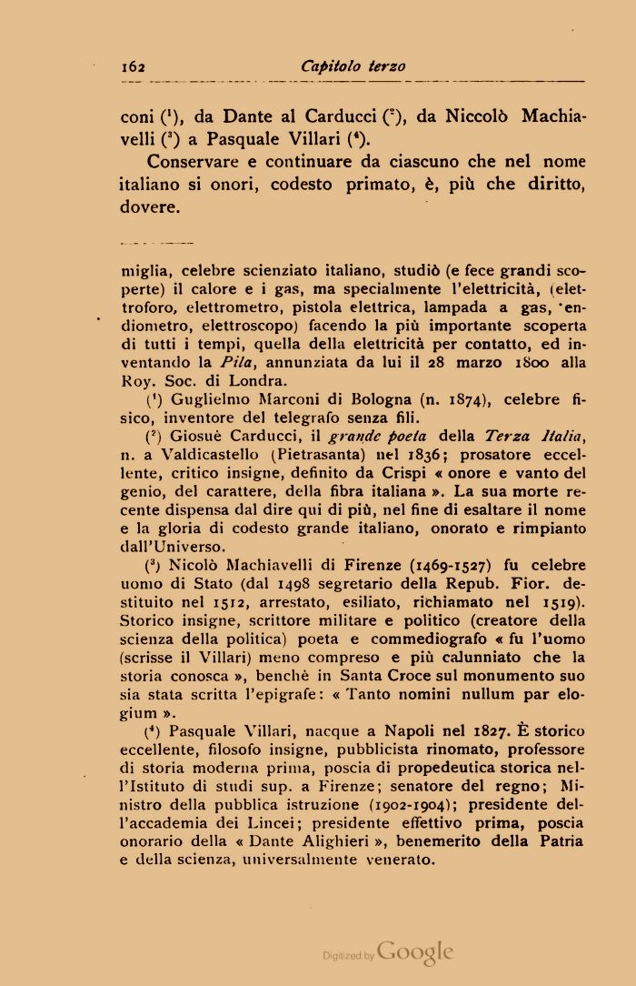 coni ('), da Dante al Carducci (), da Niccolò Machiavelli (3) a Pasquale Villari (*).