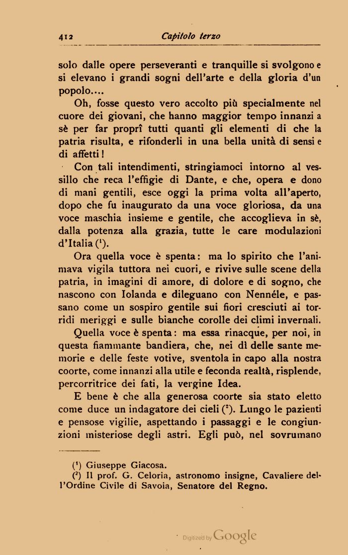 (2) Il prof. G. Celoria, astronomo insigne, Cavaliere dell'Ordine Civile di Savoia, Senatore del Regno.