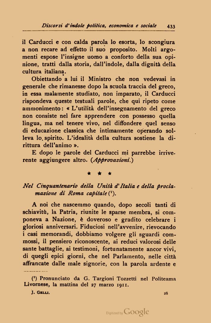 (') Pronunciato da G. Targioni 'Pozzetti ne! Politeama Livornese, la mattina del 27 marzo 1911.