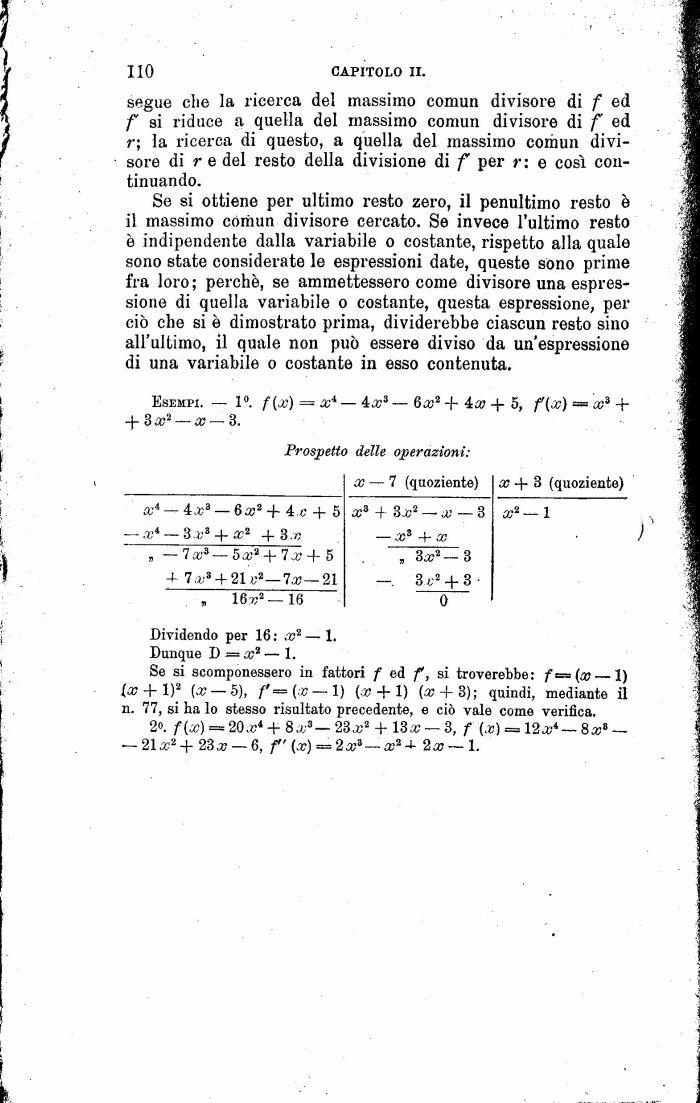 Se si scomponessero in fattori f ed f, si troverebbe: f (x 1) lx + 1)2 (x b), f'=(x 1) (x + l) («4-3); quindi, mediante il n. 77, si ha lo stesso risultato precedente, e ciò vale come verifica.