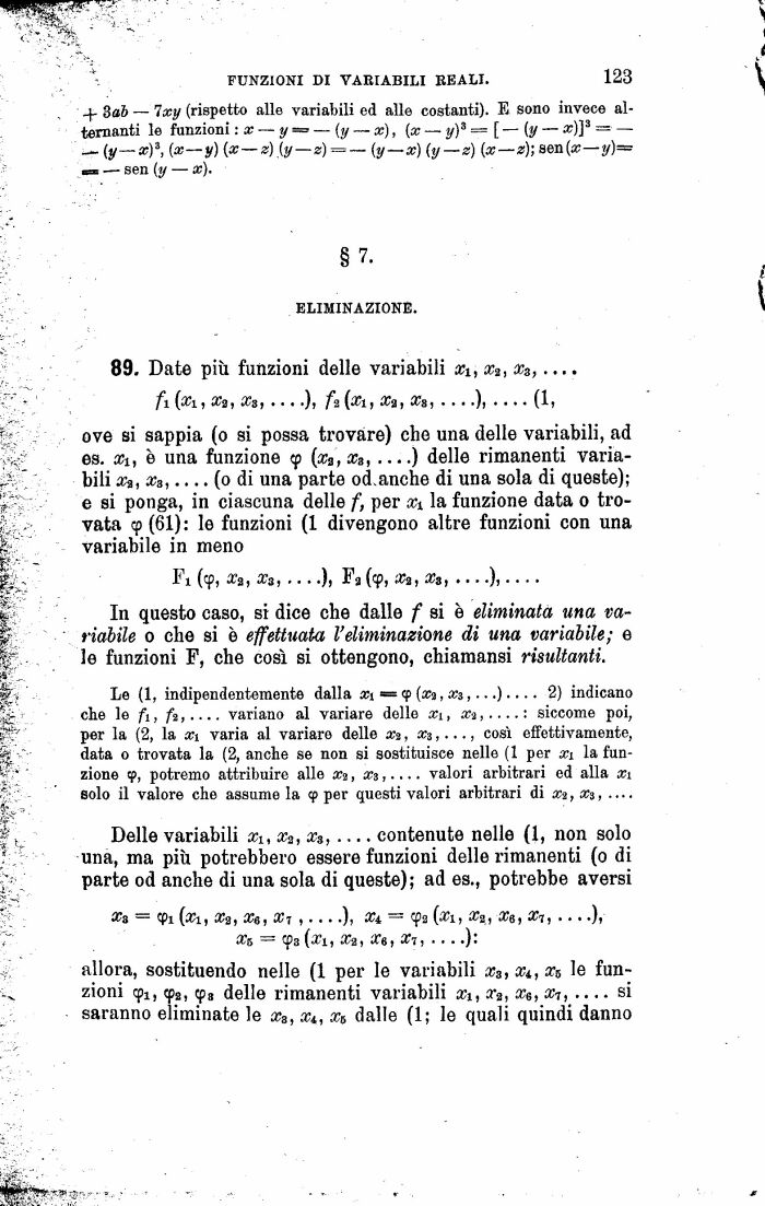 In questo caso, si dice che dalle f si è eliminata una variabile 0 che si è effettuata l'eliminazione di una variabile; e le funzioni F, che cosi si ottengono, chiamansi risultanti.