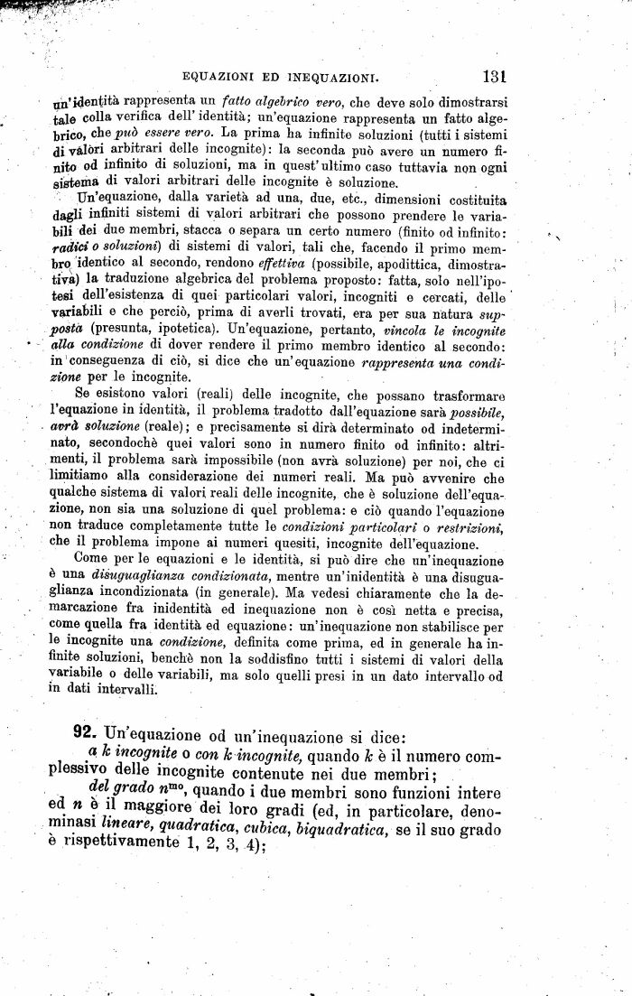 92. Un'equazione od un'inequazione si dice: a h incognite o con k incognite, quando k è il numero complessivo delle incognite contenute nei due membri ;