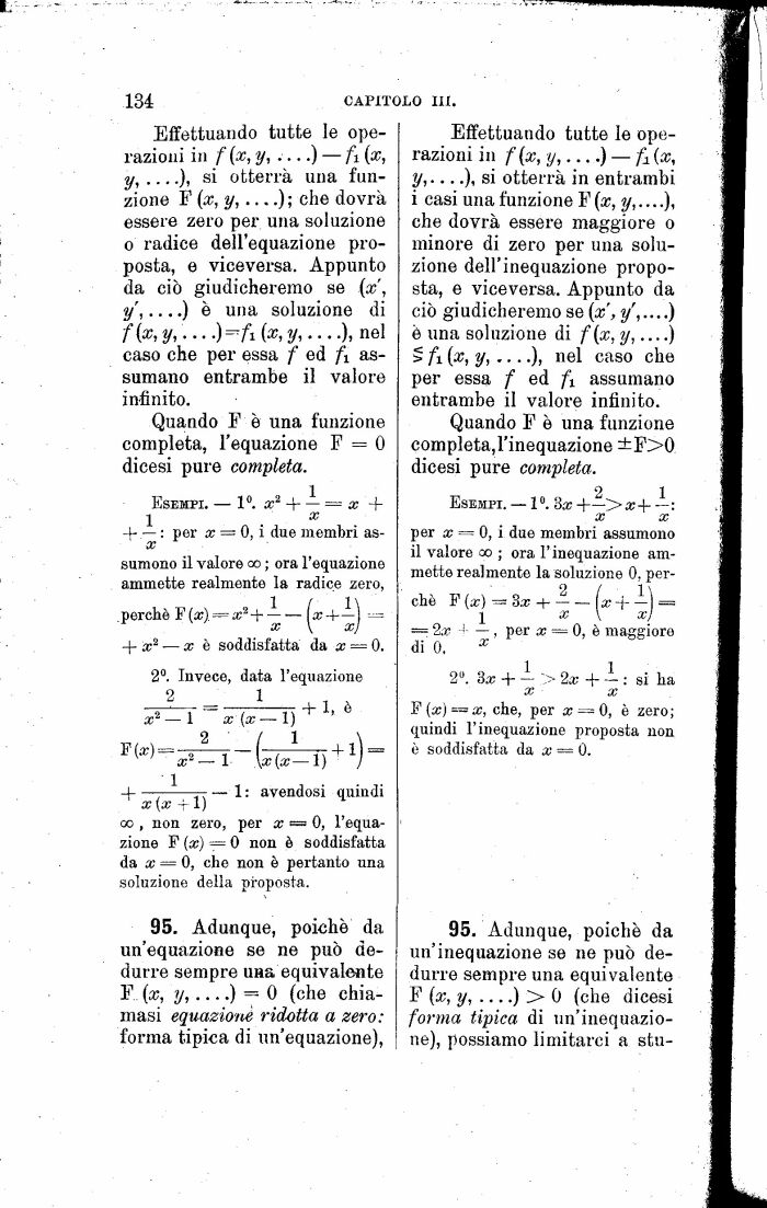 95. Adunque, poiché da un'equazione se ne può dedurre sempre una equivalente F (x, y,____) = 0 (che chiamasi equazione ridotta a zero: forma tipica di un'equazione),