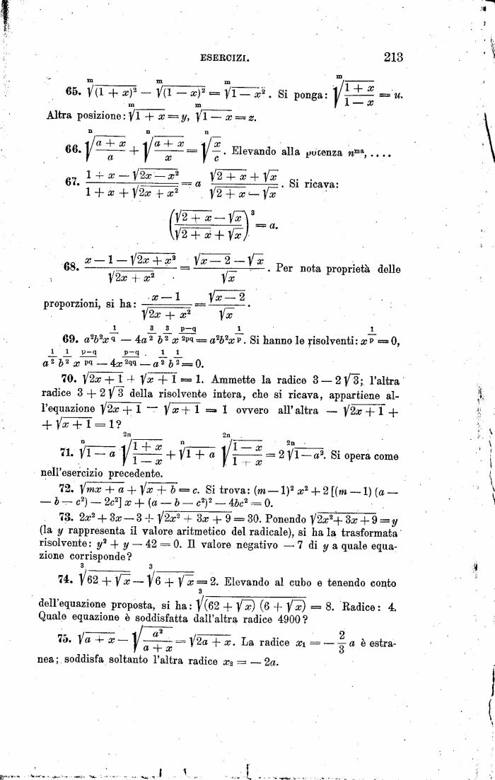 72. imx + a + Va: + b = c. Si trova: (ni l)2 x2 + 2 [(m 1) (a b c2) 2c2] x + (a b cs)2 45c2 = 0.