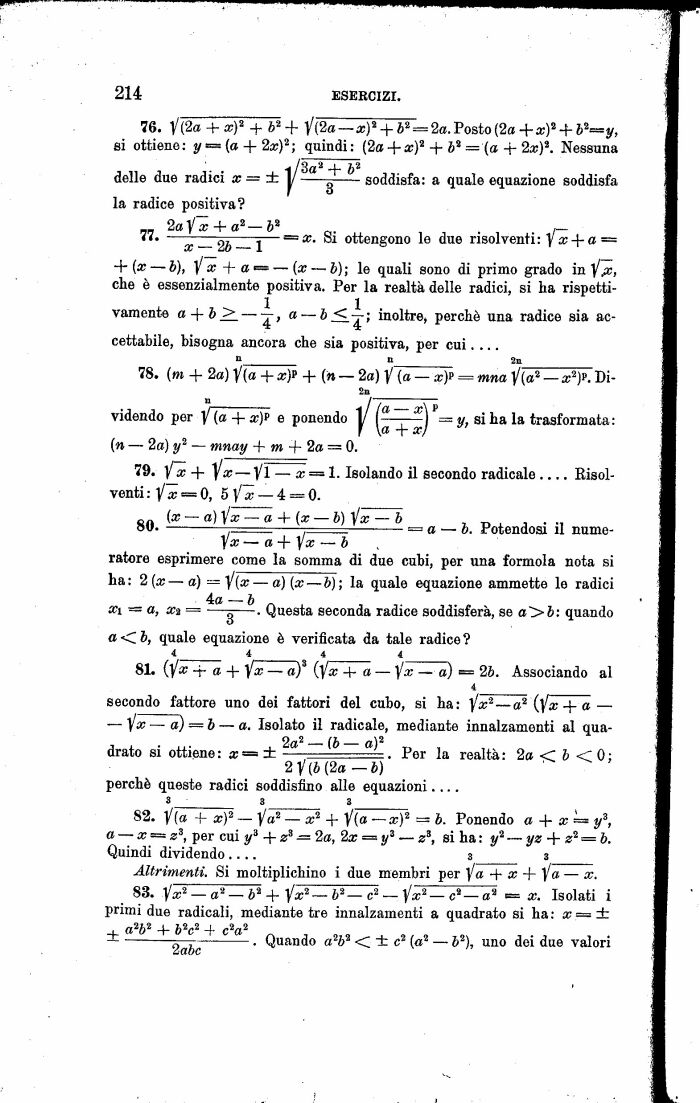 76. V(2a + x)3 + 62 + V(2a x)2 4- 62 = 2a. Posto(2a 4~a:)24- &2=y, si ottiene: y = (a + 2x)2; quindi: (2a + a:)2 + 62 = (a -+- 2x)3. Nessuna