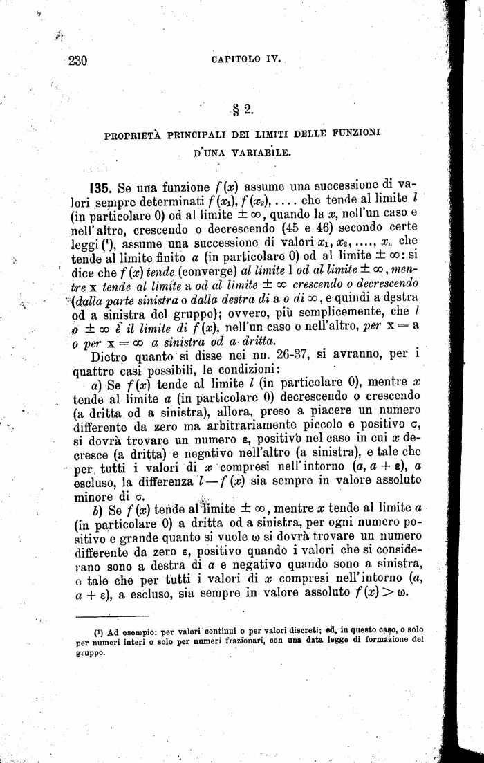 135. Se uria funzione f(x) assume una successione di valori sempre determinati f(xi), f(x2),____che tende al limite l