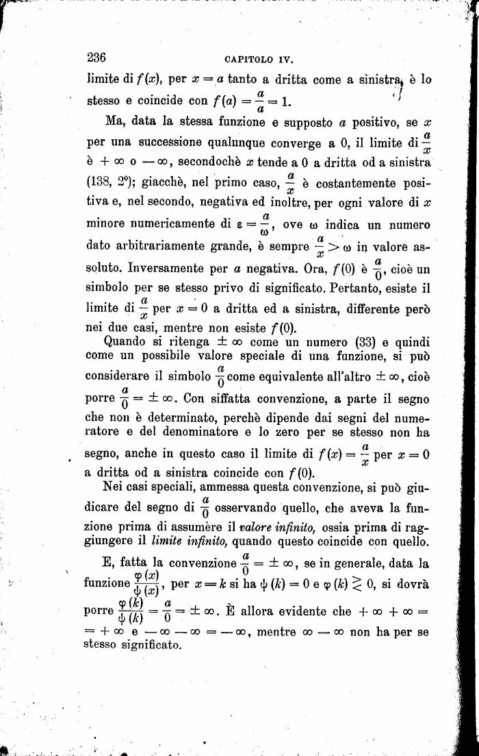 Nei casi speciali, ammessa questa convenzione, si può giudicare del segno di osservando quello, che aveva la funzione prima di assumere il valore infinito, ossia prima di raggiungere il limite infinito, quando questo coincide con quello.