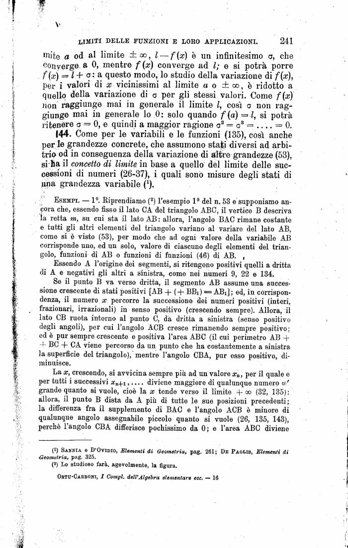 (44. Come per le variabili e le funzioni (135), così anche per le grandezze concrete, che assumono stati diversi ad arbitrio od in conseguenza della variazione di altre grandezze (53), si ha il concetto di limite in base a quello del limite delle successioni di numeri (26-37), i quali sono misure degli stati di una grandezza variabile (*)"