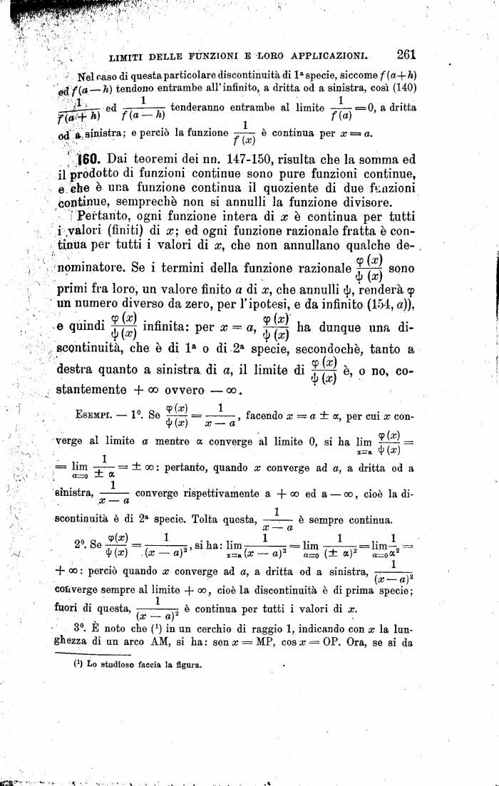 . , LIMITI DELLE FUNZIONI E LORO APPLICAZIONI. 261