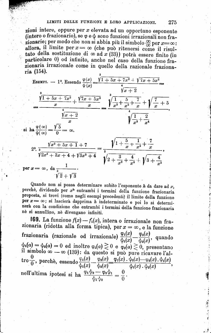 . , LIMITI DELLE FUNZIONI E LORO APPLICAZIONI. 275