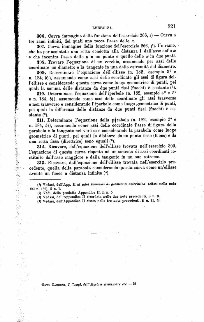 (1) Vedasi, dell'App. II ai miei Elementi di geometria descrittiva (citati nella nota del n. 182), il n. I.