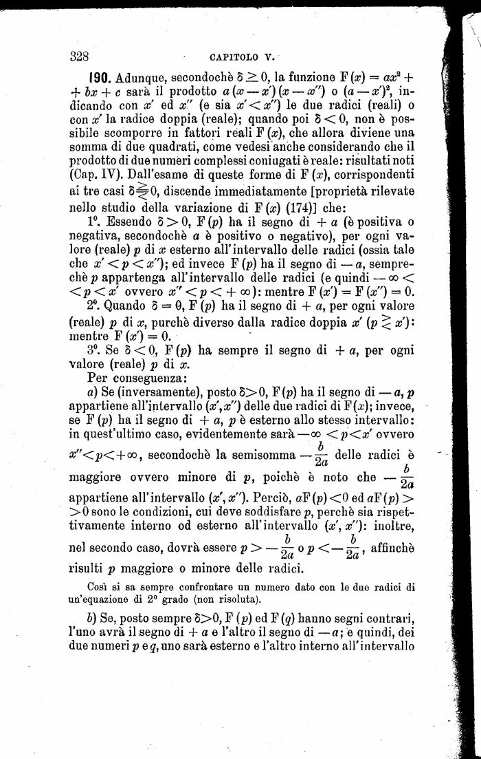 a) Se (inversamente), posto S>0, F(p) ha il segno di a, p appartiene all'intervallo (x',x') delle due radici di F(.z); invece, se F (p) ha il segno di + a, p è esterno allo stesso intervallo: in quest'ultimo caso, evidentemente sarà oo <.p