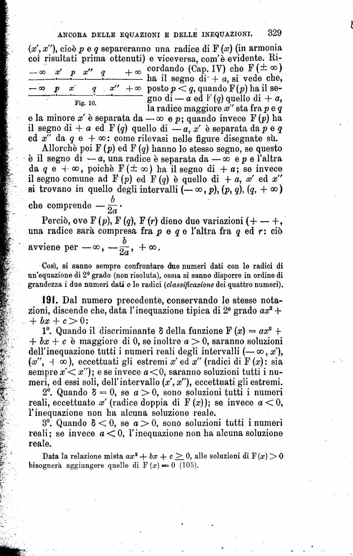 191. Dal numero precedente, conservando le stesse notazioni, discende che, data l'inequazione tipica di 2° grado ax* + + bx + c> 0: '