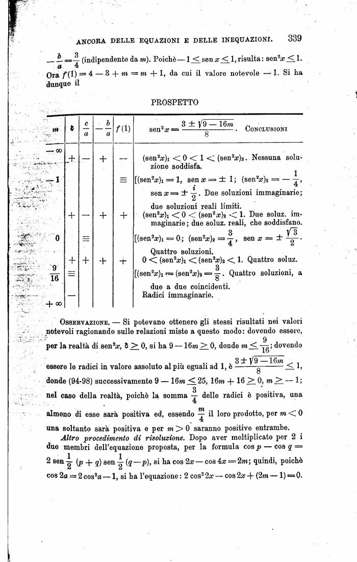 per la realtà di sen2a;, 8 >_ 0, si ha 9 16m _> 0, donde m ; dovendo essere lo radici in valore assoluto al più eguali ad 1, è '' ^ 0 < 1,