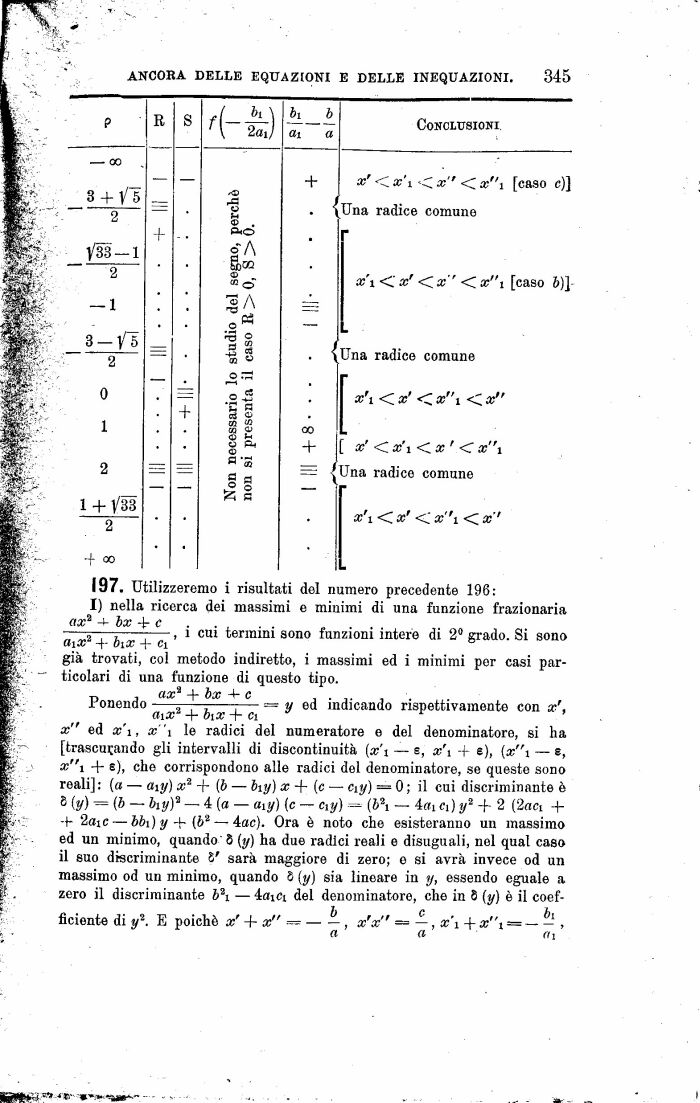 x' ed x\, x 'i le radici del numeratore e del denominatore, si ha [trascurando gli intervalli di discontinuità (x'i e, x'i -f e), (x'i e, x'i + s), che corrispondono alle radici del denominatore, se queste sono reali] : (a aiy) x'1 + (6 biy) x + (e Ciy) = 0 ; il cui discriminante è s (y) = (b h«/)2 4 (a aiy) (c Ciy) = (b\ 4«i ci) y2 + 2 (2