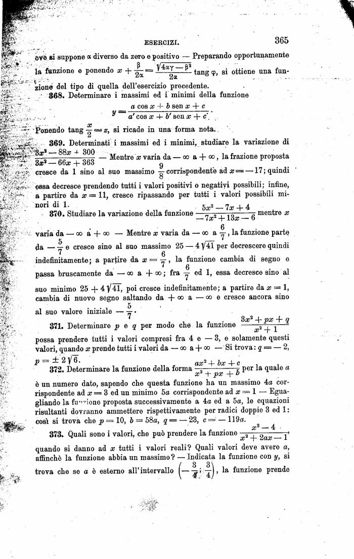zione del tipo di quella dell'esercizio precedente. - 868. Determinare i massimi ed i minimi della funzione a cos x + b sen x + e