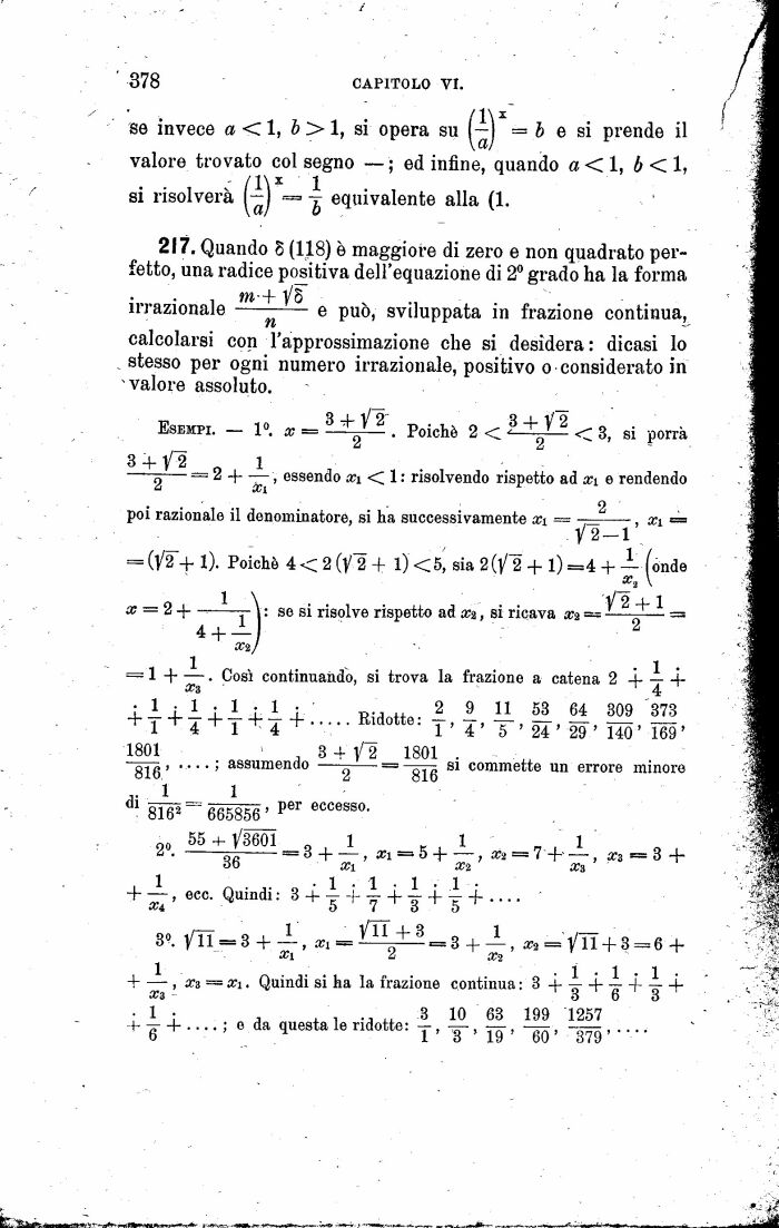 217. Quando 8 (118) è maggiore di zero e non quadrato perfetto, una radice positiva dell'equazione di 2° grado ha la forma