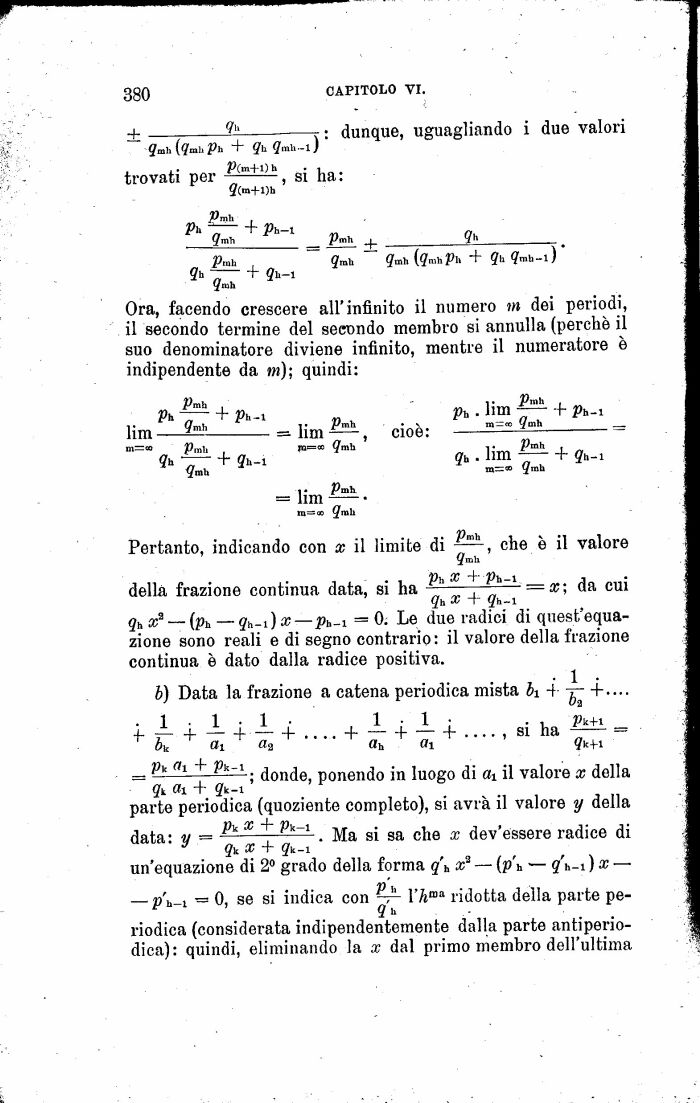gh x2 (ph qh-i)x pb~i = 0. Le due radici di quest'equazione sono reali e di segno contrario: il valore della frazione continua è dato dalla radice positiva.