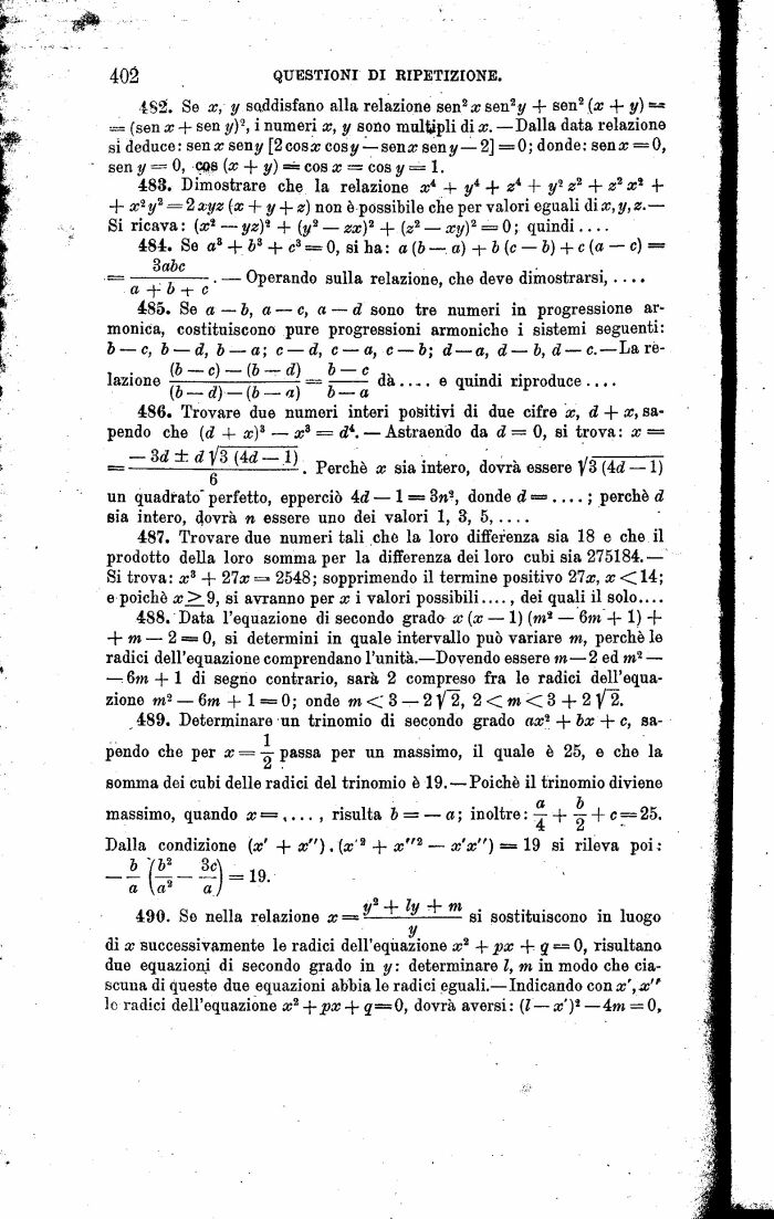 489. Determinare un trinomio di secondo grado ax'1 4- bx + c, sapendo che per x = i passa per un massimo, il quale è 25, e che la
