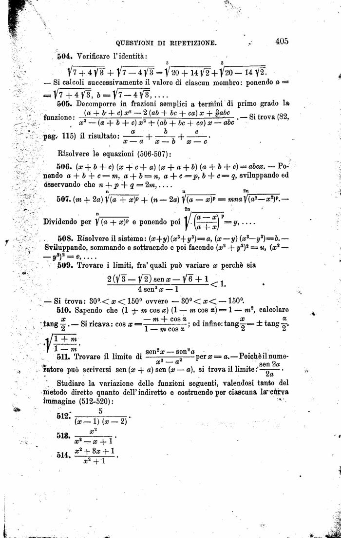 Studiare la variazione delle funzioni seguenti, valendosi tanto del metodo diretto quanto dell'indiretto e costruendo per ciascuna larcàtva immagine (512-520):