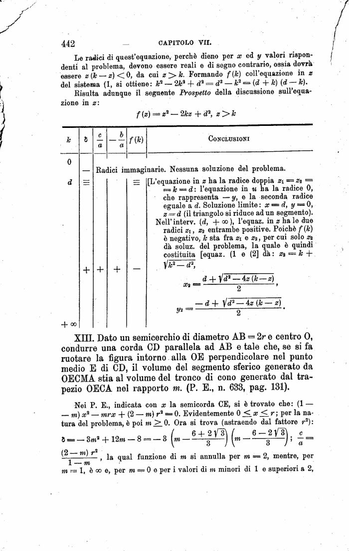 Le radici di quest'equazione, perchè dieno per x ed y valori rispondenti al problema, devono essere reali e di segno contrario, ossia dovrà essere z(k z)<0, da cui z>k. Formando f(k) coll'equazione in z del sistema (1, si ottiene: k2 2fc2 -f d2 = d2 k2 = (d + k) (d k).