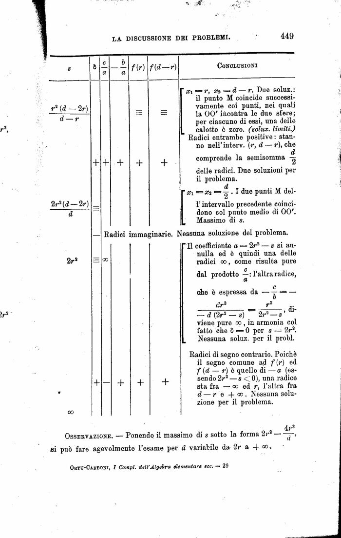si può fare agevolmente l'esame per d variabile da 2r a + 00 " Orto-Carboni, 1 Compi. dell'Algebra elementare ecc. 29