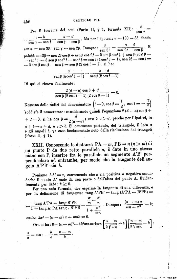 a + 6 == c + d, è e>b. Si conoscono pertanto, del triangolo, il lato a e gli angoli p, y : caso fondamentale noto della risoluzione dei triangoli (Parte II, § 1).