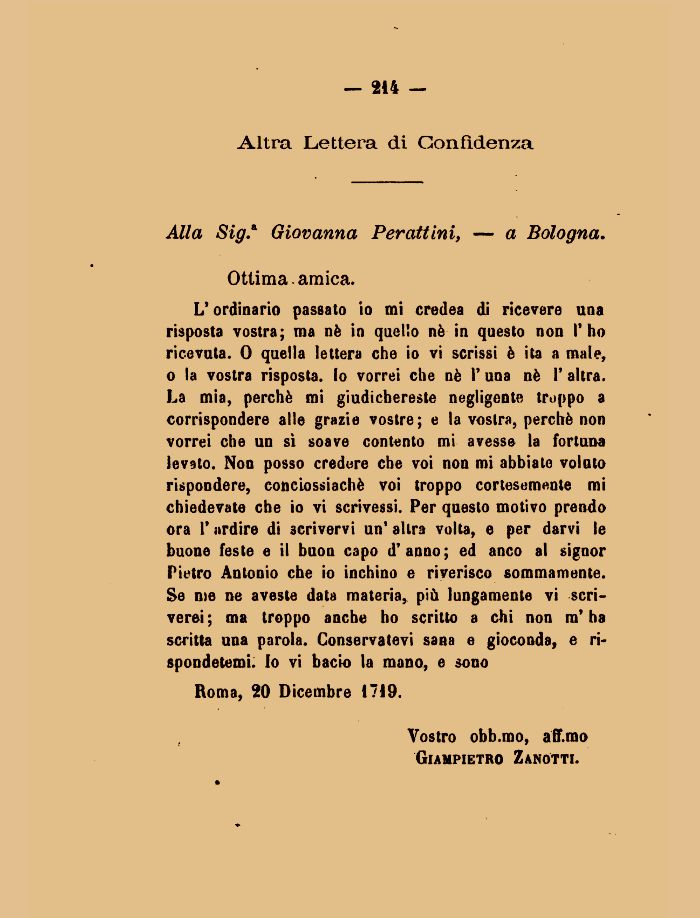 Vostro obb.mo, aff.mo Giampietro Zanotti.