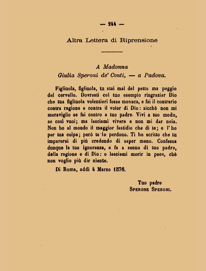 A Madonna Giulia Speroni de' Conti, — a Padova.