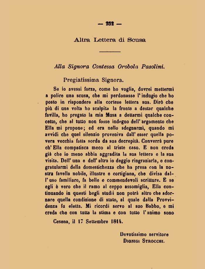 Alla Signora Contessa Oroboia Pasolini.