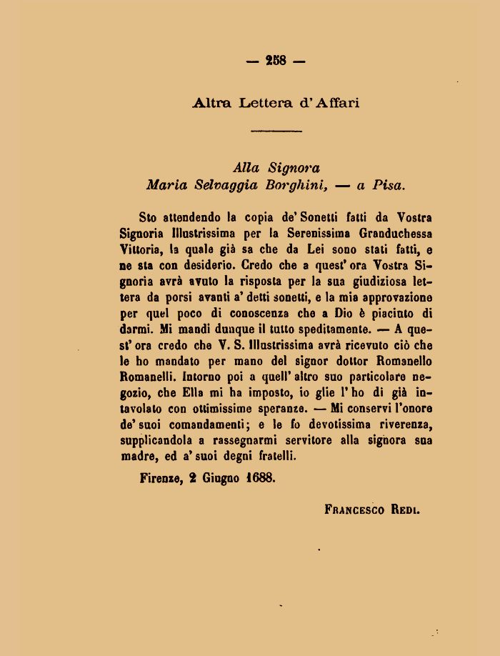 Alla Signora Maria Selvaggia Borghini, — a Pisa.