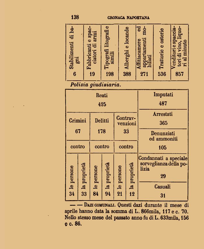 aprile hanno data la somma di L. 866mila, 117 e c. 70. Nello stesso mese del passato anno fu di L. 633mila, 156 e c. 86.