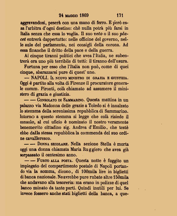 Ai cinque tiranni politici che avea l'Italia, ne subentrerà ora uno più terrìbile di tutti: il tiranno dell'usura.